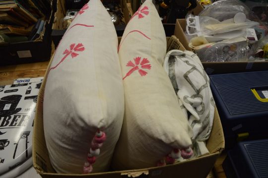 A pair of Designers Guild cushions and a cover.