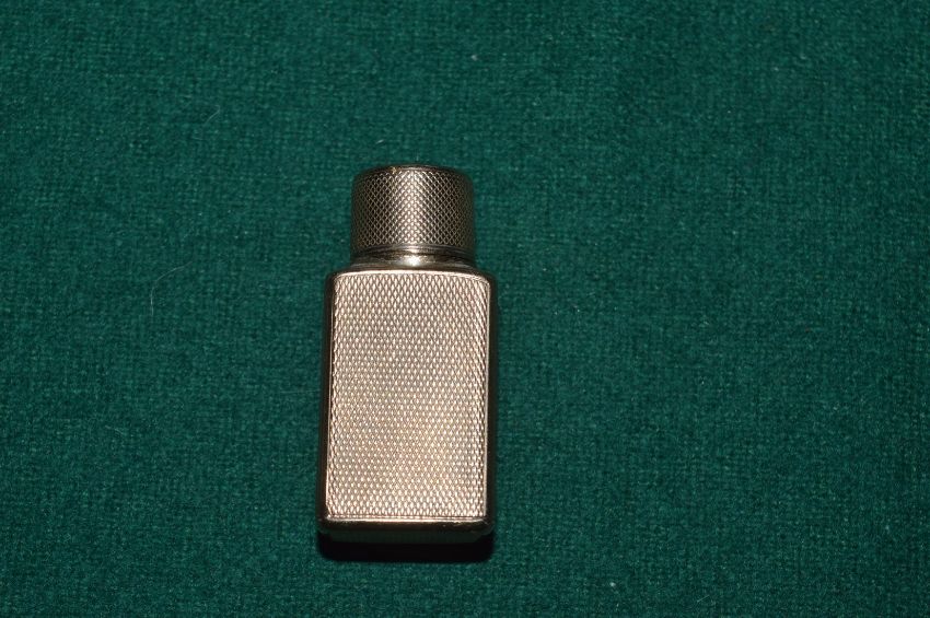 A 9ct gold engine turned scent bottle with glass liner.
