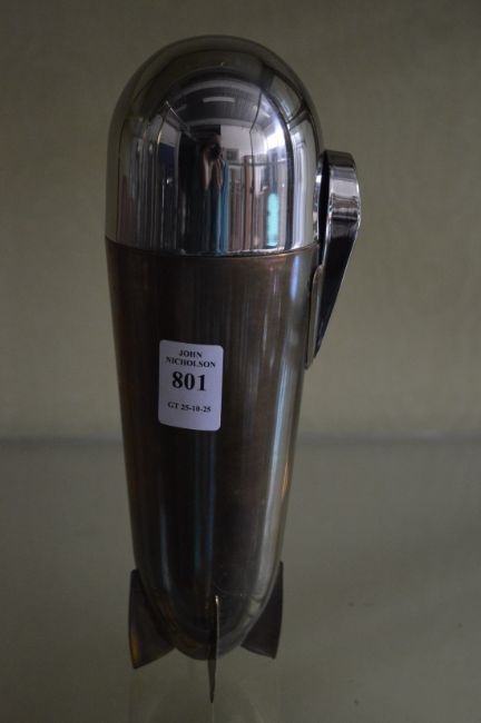 A Zeppelin shaped cocktail shaker with fitted interior.