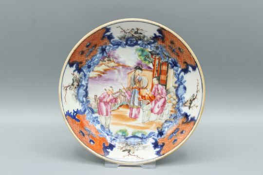 A GOOD SET OF FOUR CHINESE MANDARIN SAUCERS, CIRCA 1736 - 1765.
