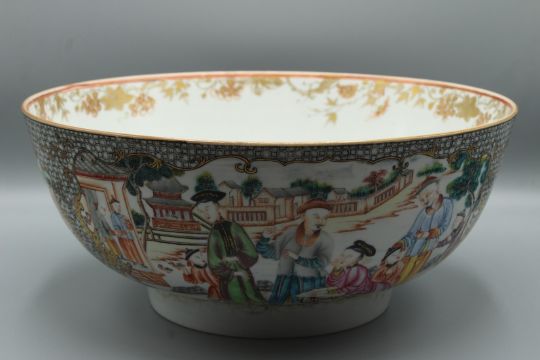 A GOOD LARGE CHINESE CIRCULAR PUNCH BOWL CIRCA 1736 - 1791.