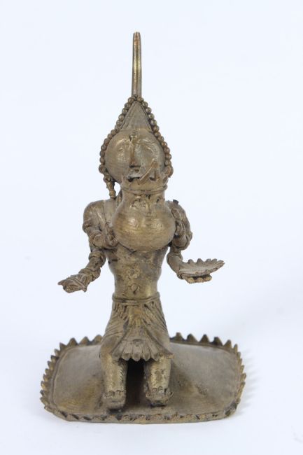 A SMALL ISLAMIC BRONZE FIGURE holding a bowl.