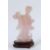 A CHINESE ROSE QUARTZ OF GUANYIN on a wooden base.