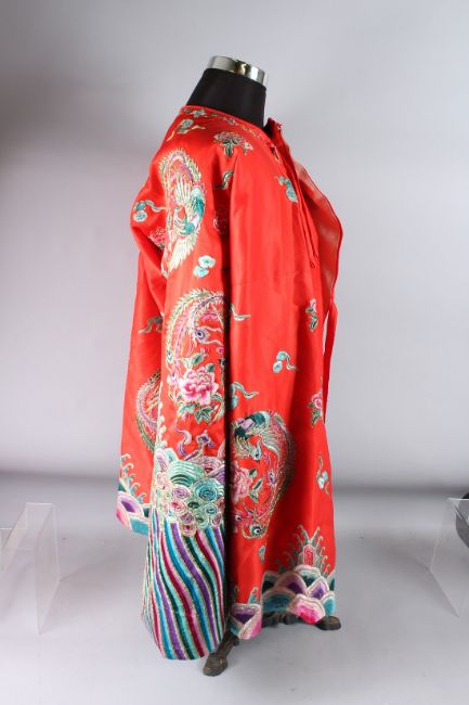 A CHINESE RED GROUND EMBROIDERED ROBE.