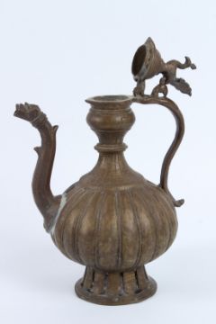 AN 18TH - 19TH CENTURY MUGHAL INDIAN BRASS OR BRONZE EWER.