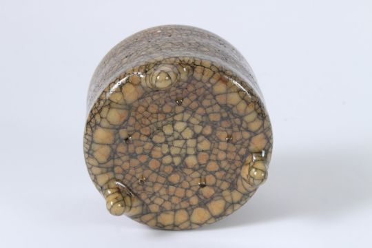 A CHINESE CRACKLE GLAZED TRIPOD BURNER.