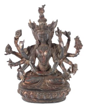 A CHINESE MULTI-ARM BRONZE DEITY.