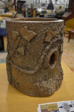 Hexter Humpherson, an unusual large salt glazed jardiniere of naturalistic form modelled as a tree trunk.