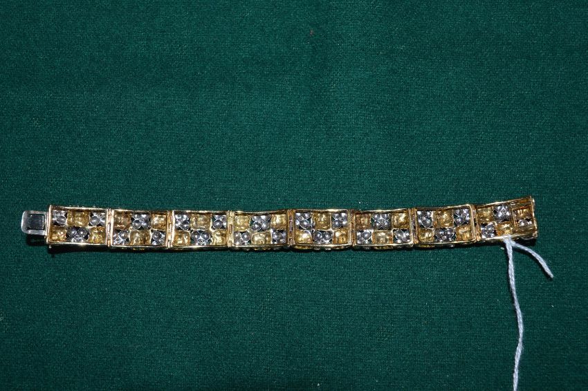 A yellow metal and gem set bracelet set with flower head decoration, stamped 750.