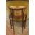 A pair of French style marquetry inlaid demi-lune three drawer bedside tables.