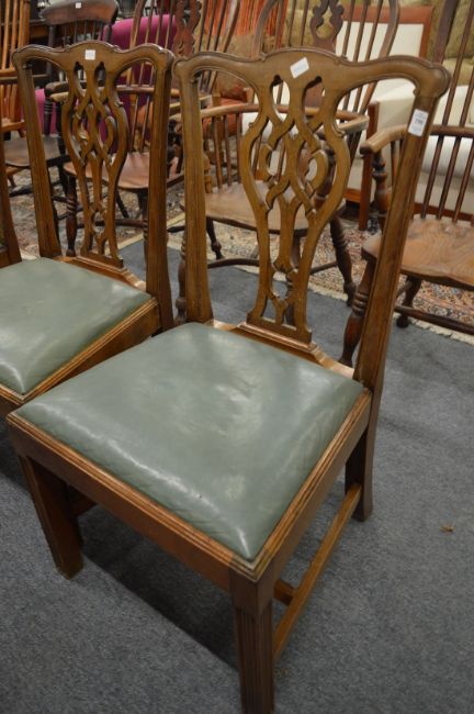 A set of six George III style mahogany dining chairs with drop-in seats.