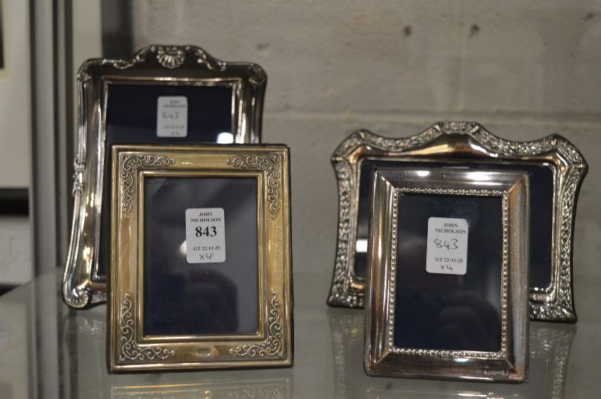 Four silver photograph frames.