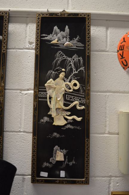 A set of four Chinese panels with onlaid decoration.