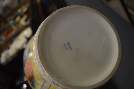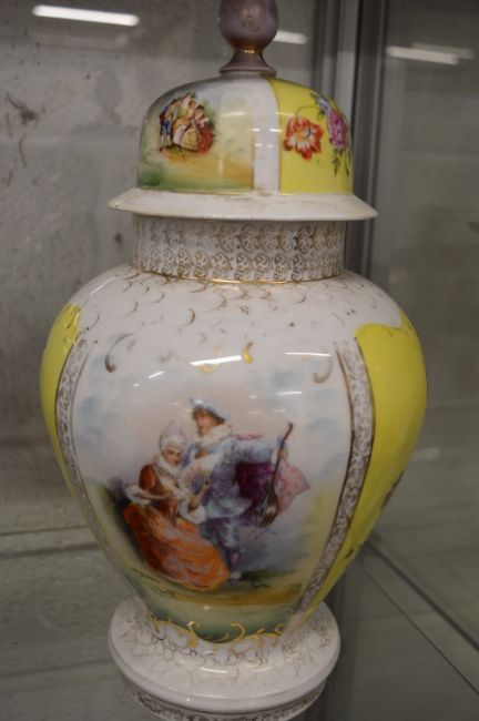 A pair of large Dresden porcelain vases and covers painted with panels of figures.