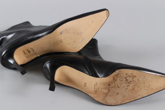 A PAIR OF GINA BLACK BOOTS.