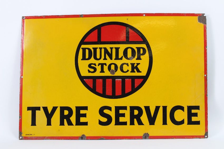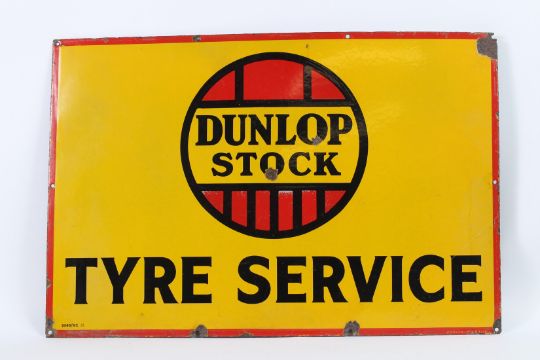 A VINTAGE DUNLOP STOCK TYRE SERVICE ENAMEL SIGN.