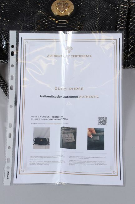 A GUCCI SNAKESKIN BAG with zip and four handles, with circular gilt GUCCI crest.