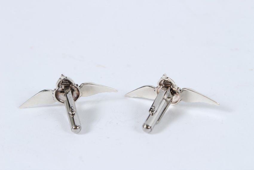 A PAIR OF SILVER RAF CUFFLINKS.