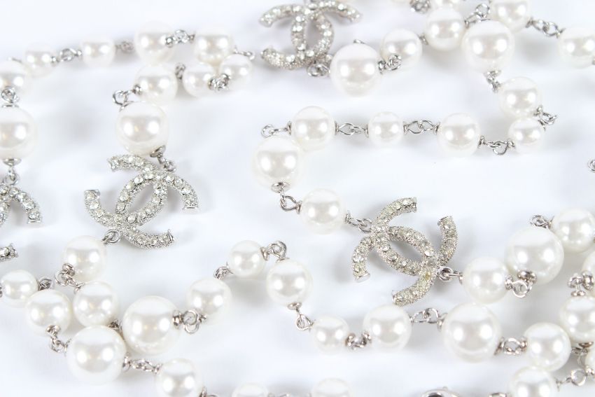 A VERY GOOD CHANEL DOUBLE ROW PEARL NECKLACE with four double C clasps.