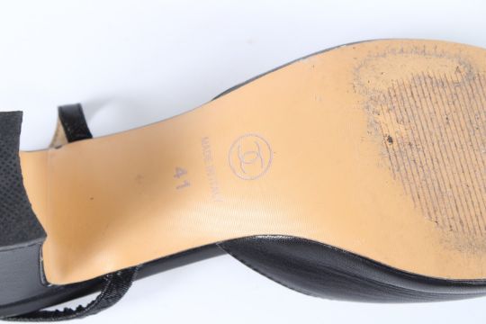 CHANEL BLACK LEATHER SHOES. Size 41.