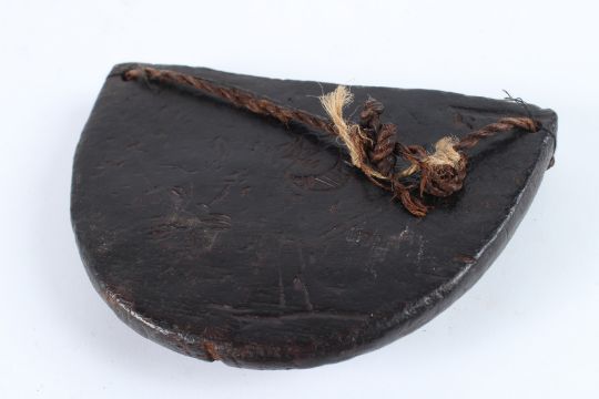 AN EARLY NAIVE CARVED WOOD POUCH.