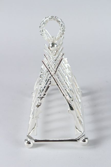 A SILVER PLATED CROSS RIFLES TOAST RACK.