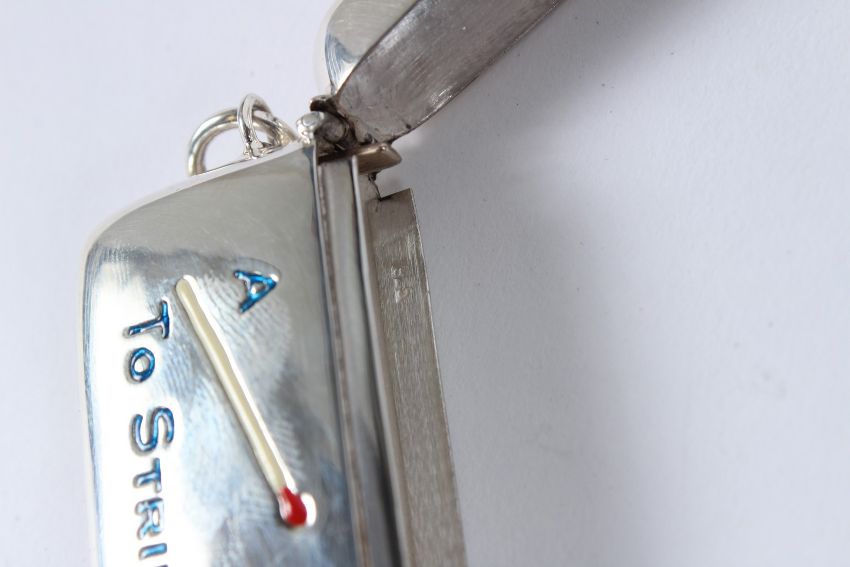 A SILVER ENAMEL VESTA (match to strike).