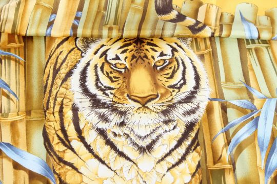 A SALVATORE FERRAGAMO BAMBOO SILK SCARF in original box.