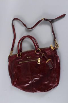 A LARGE PRADA SOFT DEEP RED LEATHER BAG with small handle and long strap.
