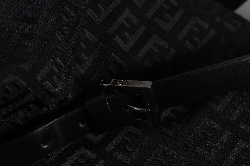 A FENDI BLACK BAG with chrome clasp and plain leather handle.