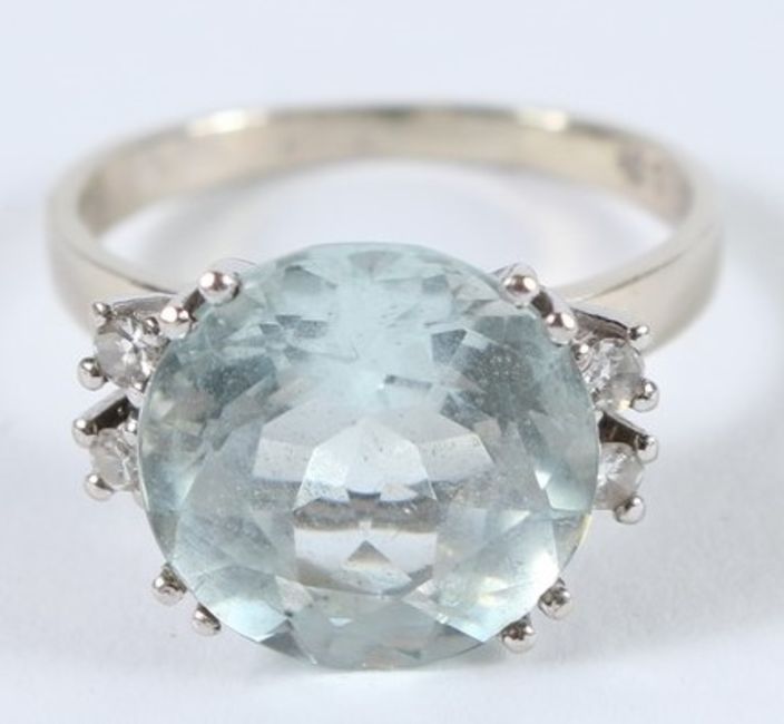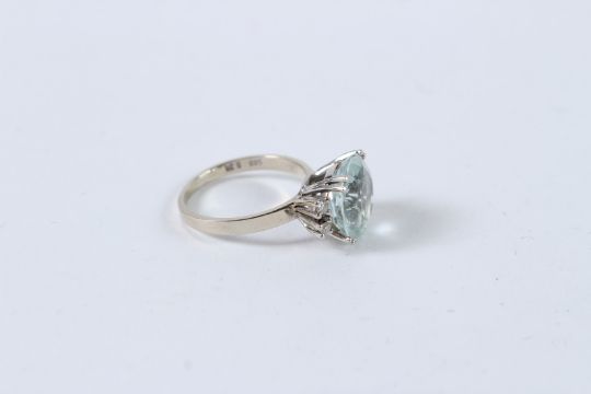 A LARGE  AQUAMARINE RING.