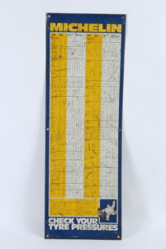 A VINTAGE MICHELIN TYRE PRESSURE GUIDE ENAMEL SIGN.