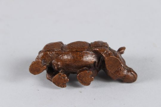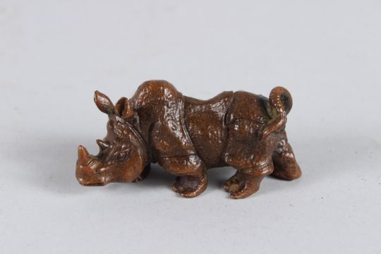 A SMALL JAPANESE BRONZE RHINO.