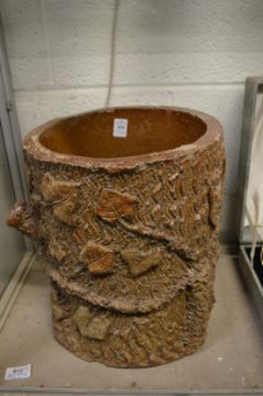 Hexter Humpherson, an unusual large salt glazed pottery jardiniere modelled as a tree stump.