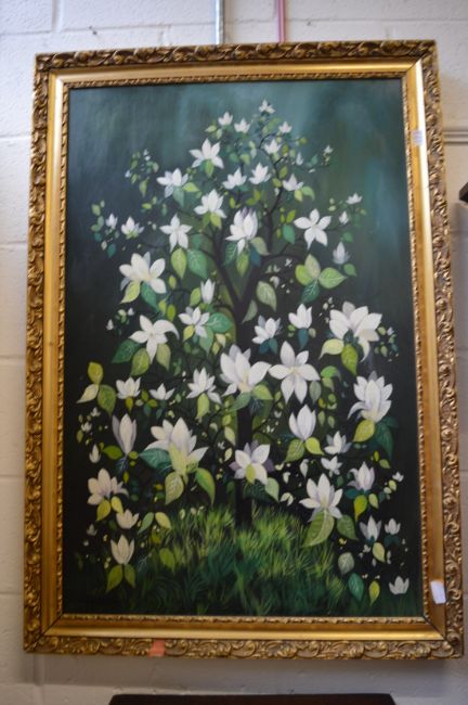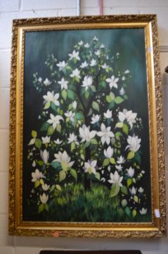 Preston Goddard, a flowering tree, oil on board.