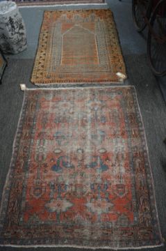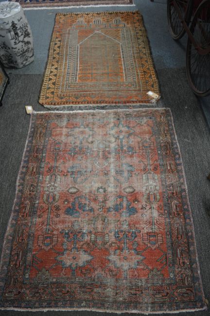 Two Persian rugs, worn, 155cm x 100cm and 130cm x 106cm.