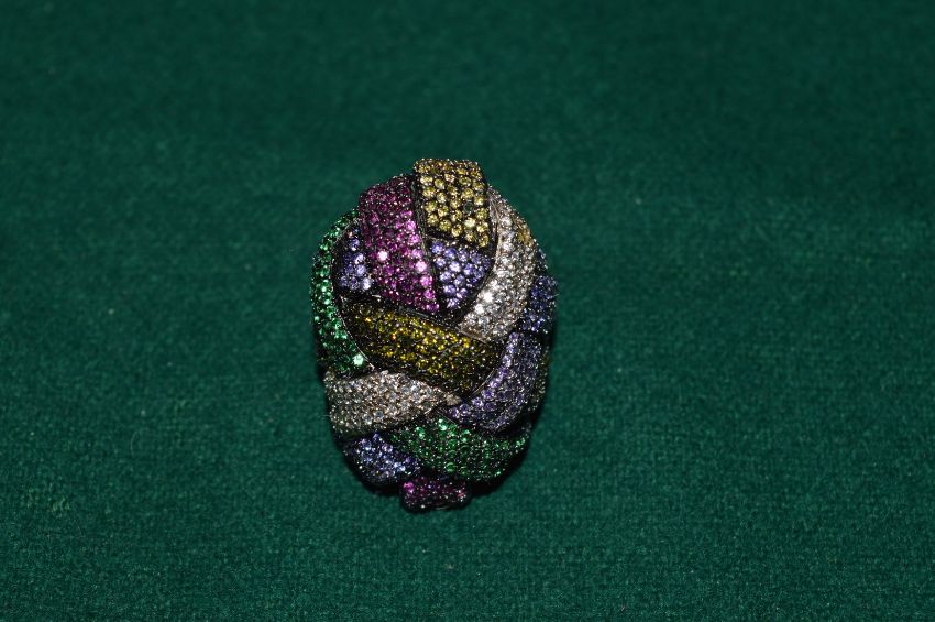 Heavy silver ring with decorative stones.