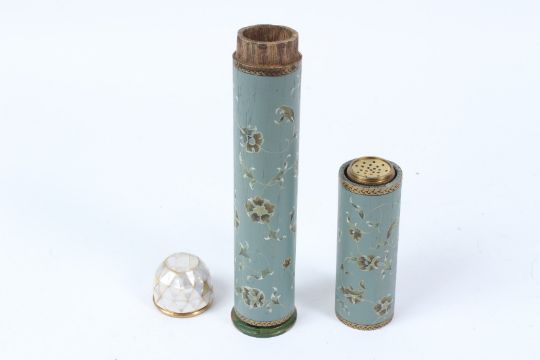 A TURKISH OTTOMAN PAINTED PEN BOX with mother-of -pearl top in four pieces.