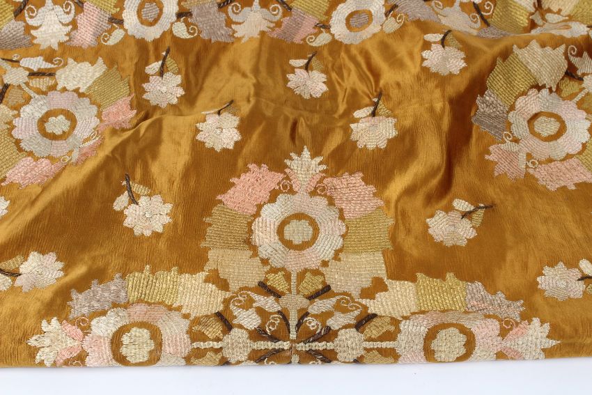 A 19TH CENTURY BROWN OTTOMAN TEXTILE with flower heads.