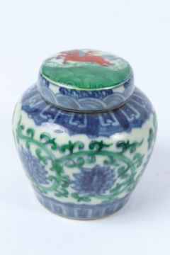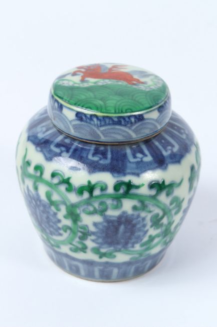A CHINESE DOUCAI GINGER JAR AND COVER.