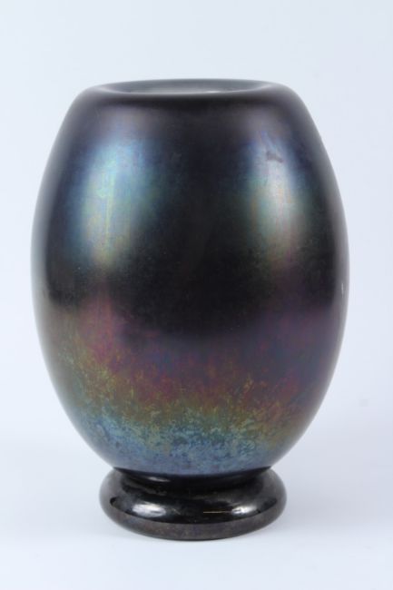 ANTHONY STERN. A large dark iridescent heavy glass vase, engraved signature to the base.
