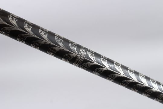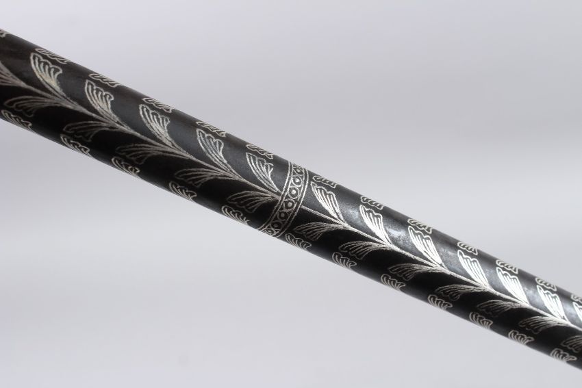 A PERSIAN SILVER INLAID MACE.