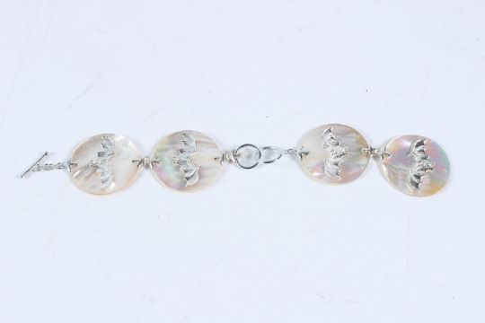 A SILVER AND MOTHER-OF-PEARL BAT BRACELET.