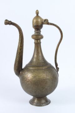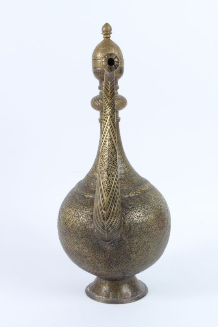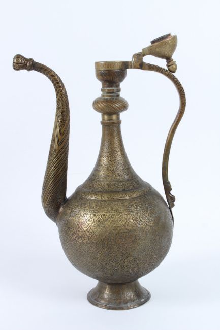 A FINE AND LARGE 19TH CENTURY CENTRAL ASIAN BUKHARA ENGRAVED BRASS EWER.