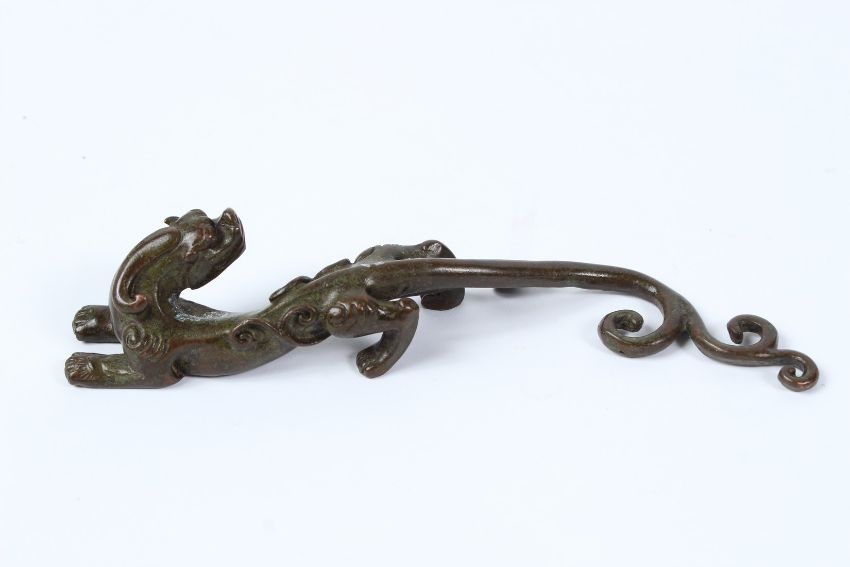 AN ORIENTAL OKIMONO BRONZE DRAGON.