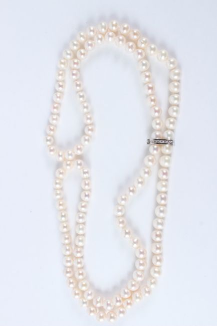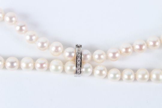 A 32 INCH DOUBLE FRESHWATER PEARL NECKLACE, with pearl separators.