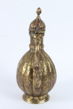 AN 18TH - 19TH CENTURY MUGHAL INDIAN ENGRAVED BRASS EWER.
