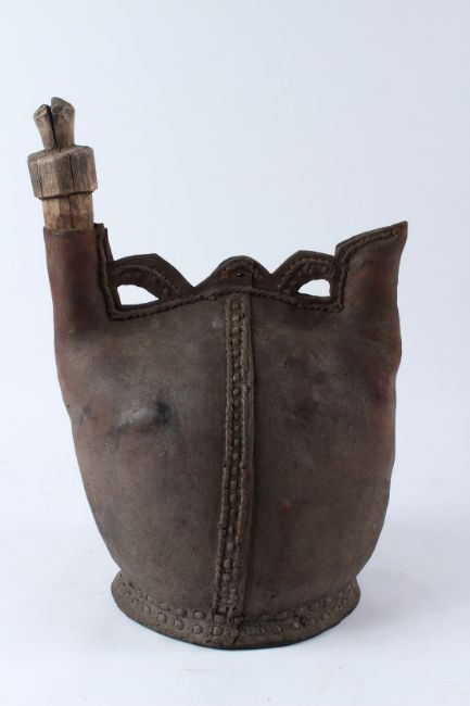 A VERY LARGE 16TH - 17TH CENTURY OTTOMAN, POSSIBLE BALKANS, LEATHER WATER CONTAINER.