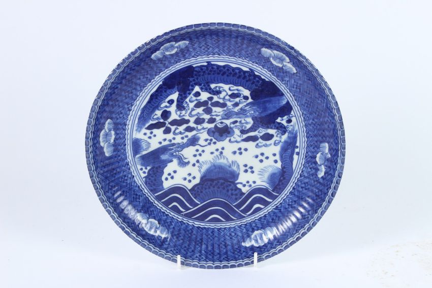 A JAPANESE IMARI BLUE AND WHITE PLATE.