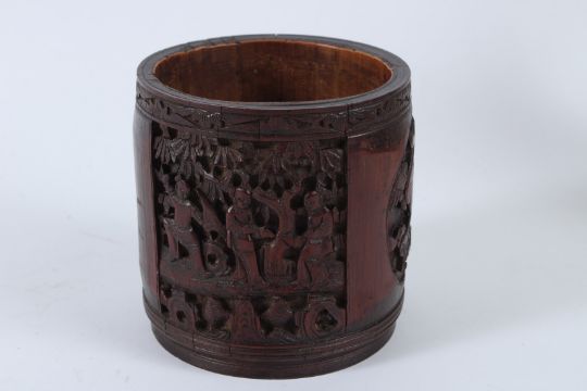 A CHINESE CARVED BAMBOO BRUSH POT, also known as a BITONG.
